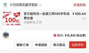 一些消费者了解到此漏洞后,也开始领取优惠券,并购买可以快速到账的商品。例如,充值100元话费仅需4毛钱。且因未限量、未设置使用门槛,用户可无限领取并使用。