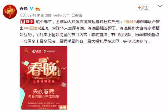 寻找合适的内容和形式进行创新,是春晚的必经之路。这些年的微信刷一刷、支付宝集福和今年的百度红包,都是春晚选择的创新之处;同时与微博开展的平台合作,也是一种调动观众参与度的新形态。