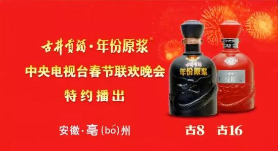 古井贡酒与贵州茅台同样位列广告宣传费用最高的几家酒企之一,并且已经连续三年在央视春晚上,以“特约播出”的广告形式与观众照面。今年的春晚5秒广告,也早就开始在央视的几个频道滚动播出。