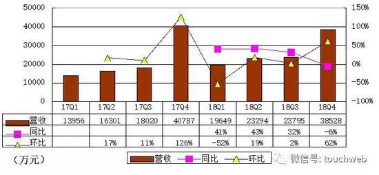 如涵2018年第四季度营收为3.85亿元,较上年同期的4.07亿元下降6%,较上一季度的2.37亿元增长62%。