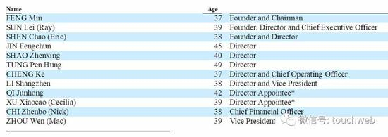 IPO前,FENG Min持股为29.27%,为公司最大股东;SUN Lei (Ray)持股为14.59%;SHEN Chao (Eric)持股为6.67%;