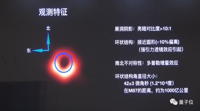 是一个接近圆形的环状结构,黑洞阴影亮的地方和中心黑洞对比度超过10倍,说明这个黑洞是真实的。