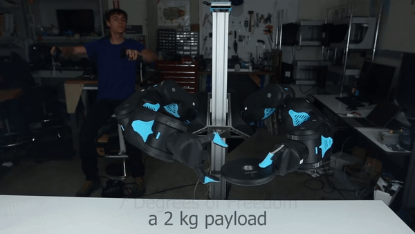 可温顺,可傲娇Blue的尺寸和人类手臂差不多,有七个自由度:肩上3个,肘部1个,手腕3个。