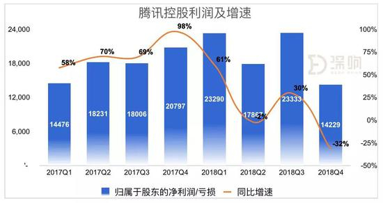 因此,我们看到腾讯自2017年第一季度,在非通用准则下归属于股东净利润仍然是呈现持续增长状态,只是考虑到其体量因素,在2018年增速呈现放缓,但并没未发生真正意义上的利润大幅下跌。