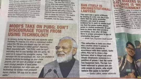 《印度日报》相关报道的新闻标题是《莫迪接纳PUBG:不要阻止年轻人接触科技》,阐明了印度官方的态度:游戏在印度是一个可被允许存在的新事物,这才是负责的。