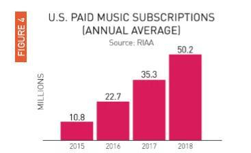 根据美国唱片业协会2019年发行的报告,2018年,美国的数字音乐在整个音乐产业市市场中占比86%(数字下载11%+流媒体75%)。