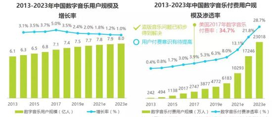 根据艾媒咨询《2019年中国在线音乐市场监测报告》:截止至2018年第四季度,中国音乐客户端用户规模已经高达5.42亿人。但相对于庞大的用户基数,付费数据其实并不算乐观。据艾瑞数据显示,2018年数字音乐付费渗透率仅5.3%,中国付费音乐用户有3877万人。说明中国的付费音乐还在起步阶段。
