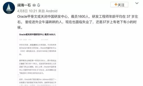 再看看如今甲骨文中国被裁员工们平均37岁的年龄,确实会更加的窘迫和尴尬。