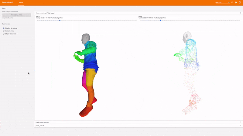 为了让用户能够进行可视化调试,TensorFlow Graphics还附带了一个TensorBoard插件,交互式地显示3D网格和点云。