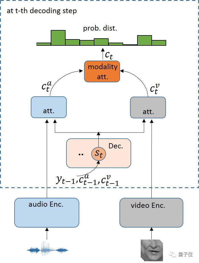 同时,这种模态注意力(Modality Attention)依据不同模态各自的重要程度计算出相应的融合系数,反应了不同模态在当前解码时刻的不同贡献度,可以随着不同解码时刻的不同信噪比等得到不同的模态融合权重,得到更加鲁棒的融合信息。