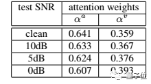 而且模型在不同噪声下,体现出了对语音和视频两种不同模态间的依赖。随着噪声的提升,模型在融合音视觉时,对视觉信息的依赖比例在逐渐提升。