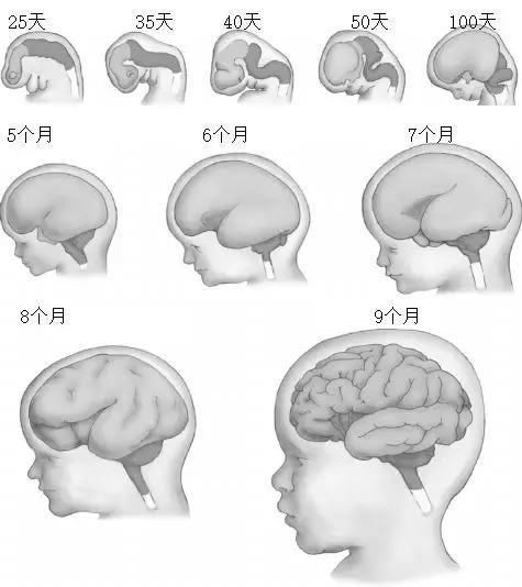 所以演化过程就另辟蹊径。因为皮质很薄,增加表面积就能增加它的数量,所以加入了很多折叠后,脑的体积基本不变,但是表面积能够增加几乎三倍。当胎儿还在子宫中 ,胎儿的大脑刚开始形成的时候,大脑是光滑的,大脑表面的折叠基本上是在孕期的最后两个月形成的。