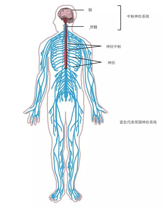 神经系统分为中枢神经系统(脑和脊髓)和周围神经系统。