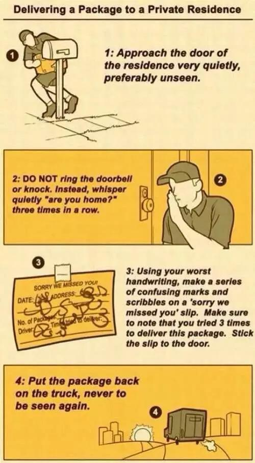 于是快递小哥们灵机动一动,制作了一分行业标准操作手册: