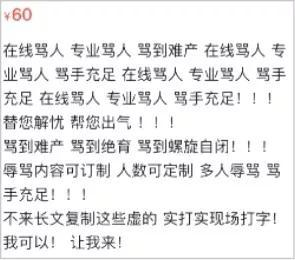 来自生活、工作中的心理压力难以排解,致使不少人萌生了在网上谩骂他人,寻求刺激的“病态”想法,间接推动了如兼职代吵、职业代骂业务的出现。