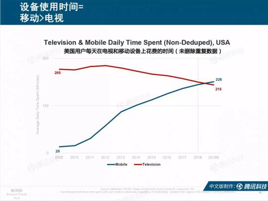 真的很惊讶,美国人移动端的时间现在才超过了电视端。而回到国内,也许数据方面移动设备仍不占优,但从我们身边草根调研来看,电视如今就只有一个功效:和沙发一起,催眠助眠。