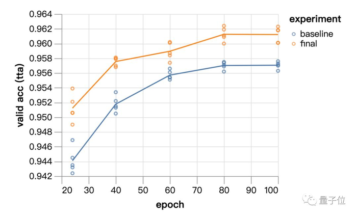 现在,虽然这一登顶成绩已经滑落到了第六位,但myrtle.ai表示在使用了与榜首Kakao Brain相同的TTA方法之后,实验模型的训练速度能降至26秒,超过Kakao Brain近10秒。