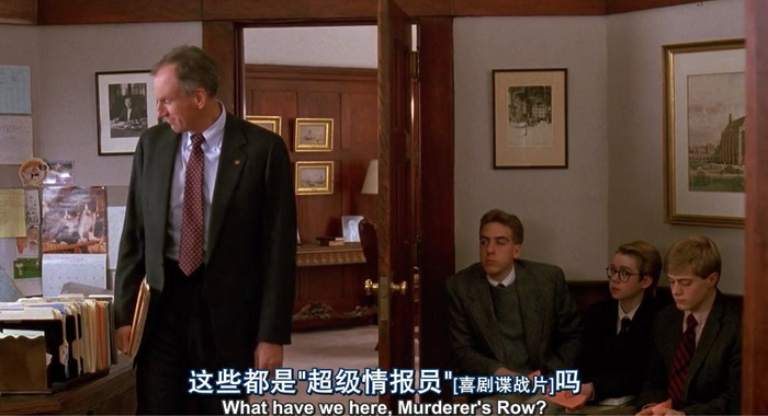 Anyway,这个镜头一晃而过,画面中的三个学生电影里纯属打酱油,没有一句台词,后来应该再也没出现过。校长疑似安插情报员这个细节,在这部电影里分量是很轻的。