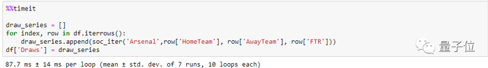Python不能利用任何内置函数,而且速度很慢。在Benedikt Droste的提供的示例中,是一个包含65列和1140行的Dataframe,包含了2016-2019赛季的足球赛结果。