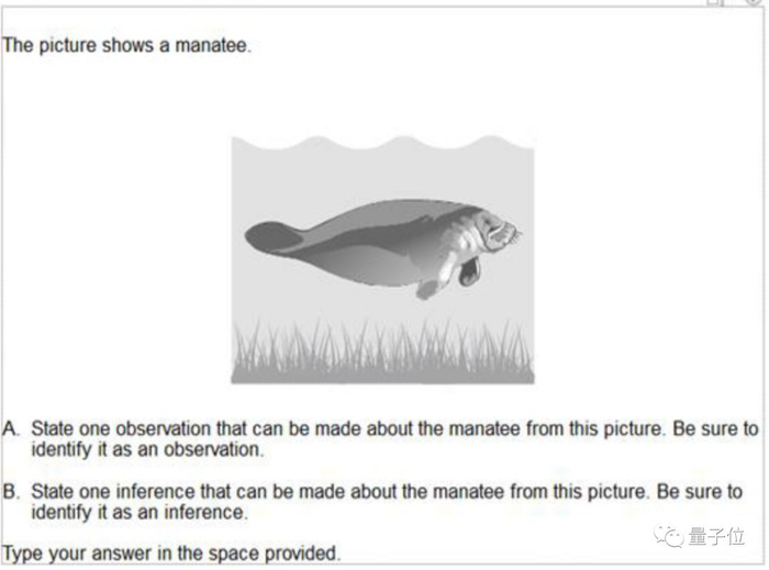 这道题目是,看到一张海牛图像,考生要写出一个观察 (A) ,和一个推理 (B) 。