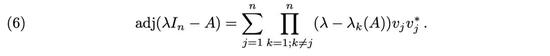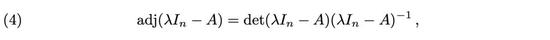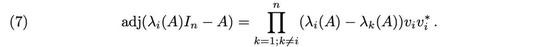 公式7右边的对角元素提供了公式2的左半部分。通过共轭的定义,公式7左边的对角元素决定了λi(A)In-A的子矩阵。