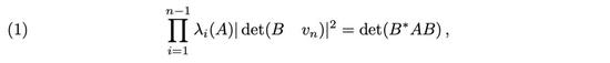 引理1。让A的一个特征值为0,不失一般性的,可以让λn(A)=0。那么对于任意大小为n x (n-1)的矩阵B,我们可以得到:
