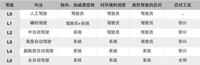 国际自动机工程师学会(SAE)对自动驾驶级别的划分
