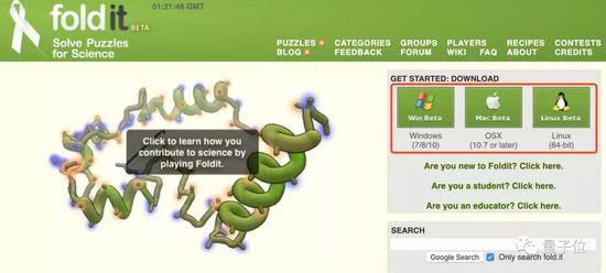 Foldit支持Windows、Mac和Linux三个操作系统,游戏下载安装非常简单(地址在文末)。