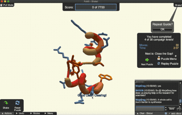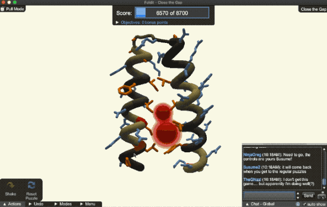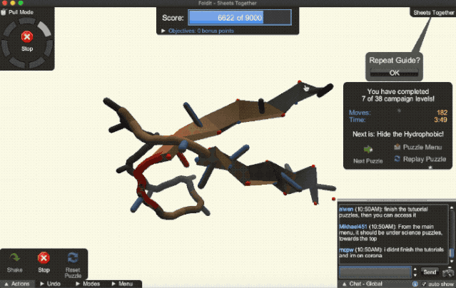 别急!Foldit的在线模式,能让你实时和其他玩家交流(前提是你的英文需要先过关……)。