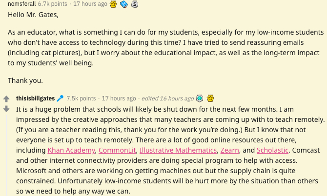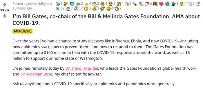 盖茨reddit发起活动,回答热心网友提问