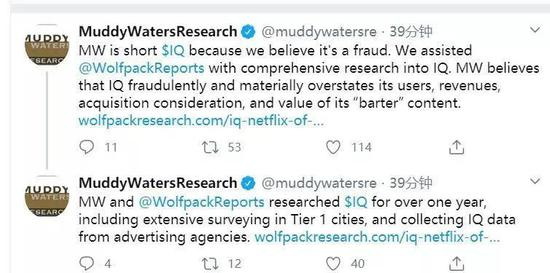 据悉,此次Wolfpack Research 做空爱奇艺的报告,得到了做空前辈浑水的支持。后者在官方推特声援Wolfpack Research,称其协助Wolfpack对爱奇艺进行了近一年的全面研究,认为爱奇艺欺骗了投资人,并极其夸大了其用户量、收入水平、收购对价以及“易货”内容(注:内容版权交易)的价值。