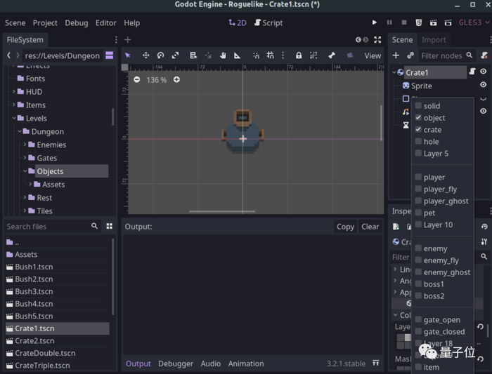 将目标的物理层设置好以后,我们还要更新敌人的RayCast2D节点,使它能够判断眼前的障碍物能否通过。
