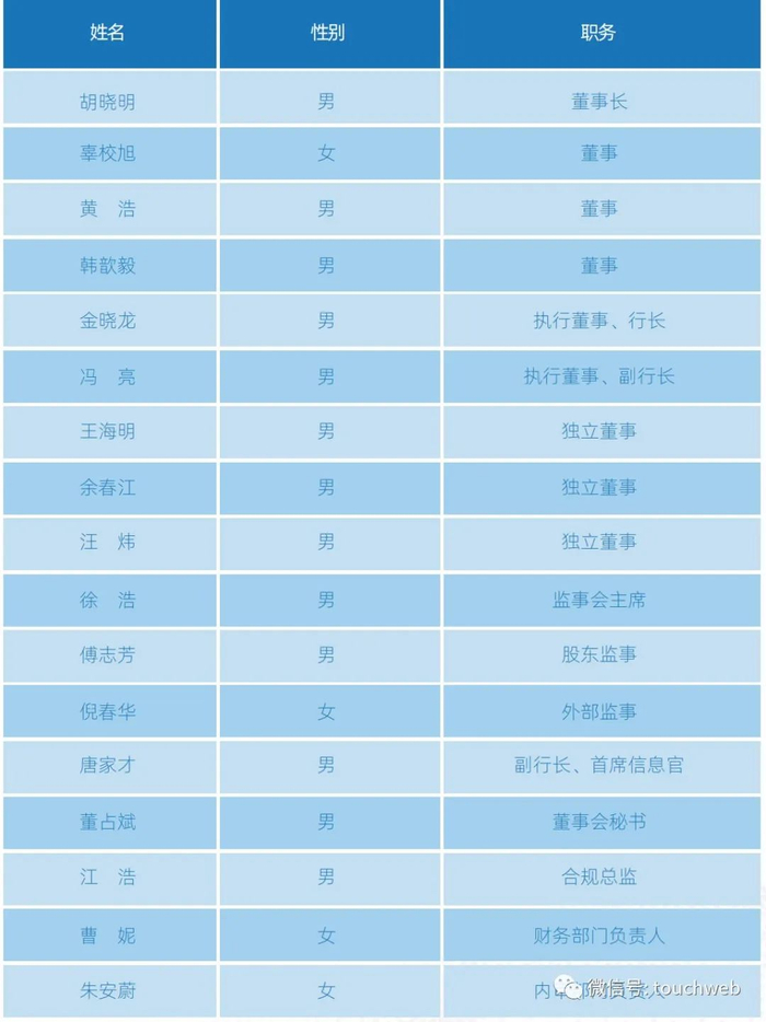 胡晓明2019年3月获股东大会选举为董事, 获董事会选举为董事长;金晓龙2019年3月获董事会聘任为行长并于2019年4月获得监管部门任职资格批复。