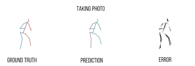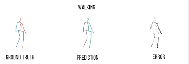 作者在Human3.6M和CMU Mocap两个数据集上进行了实验,通过计算预测结果与真实序列之间的平均角度误差进行定量评价,通过展示生成样本进行定性评价。