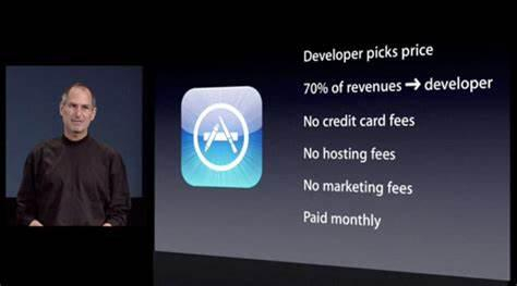 App Store的三七分成机制,也从开发者眼中的福利,变成了不愿意缴纳的30%的苹果税。苹果和微信在虚拟支付上的博弈,可以看作是新时代背景下,应用平台和超级开发者之间的斗争。