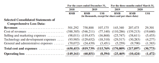 根据招股书,营收方面,Blued2019年营业收入达7.59亿元,相较2018年5.01亿元同比增长51.4%。2020年第一季度收入达2.07亿元,2019年同期为1.45亿元。