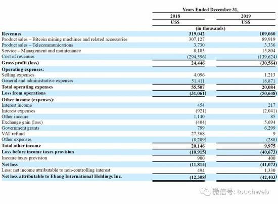 亿邦国际2019年营收1.09亿美元,2018年同期为3.19亿美元;亿邦国际2019年亏损4107万美元,上年同期净亏损1181万美元。