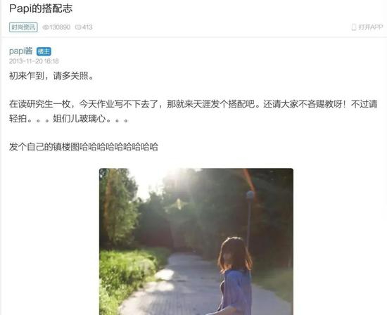 Papi酱2009年中戏本科毕业以后成为了待业女青年,但是在网上的折腾却从来没有停止过,作为资深网瘾少女豆瓣、天涯都遍布了她的身影。