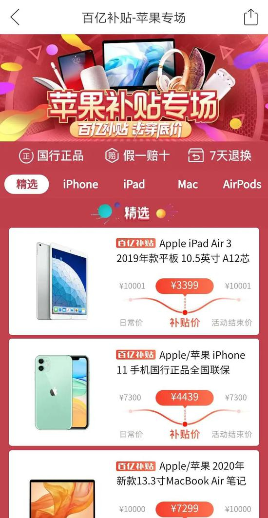 几个月后,拼多多披露,从前一年双11至2019年4月,平台新款iPhone累计售出超过110万台,平台累计补贴超过5亿元。此时拼多多对苹果的补贴可以看作是后来百亿补贴的前身,当年618前夕,拼多多推出百亿补贴,苹果系产品成为百亿补贴的重点营销对象。