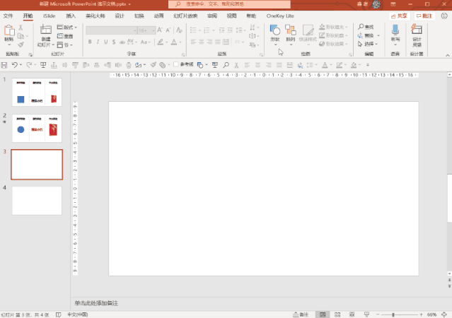 但如果这个对象不同,比如我在第一页插入了一个圆形,在第二页插入了一个矩形,然后添加“平滑”效果,那画面中只能显示“淡入淡出”效果,没有“平滑”的变化。