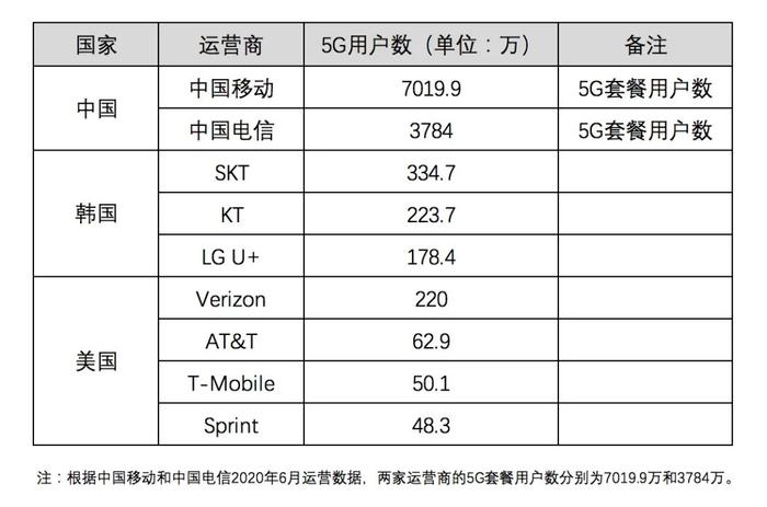 自此,中国、韩国、美国全球三大5G领先市场的5G用户规模数对比如下: