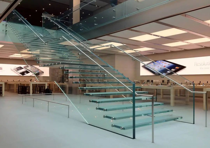 除了优越的地理位置和庞大的规模外,该商店还因提供三层玻璃楼梯而闻名,这是Apple Store设计中的稀有事物。仅在另外两家Apple Store商店有,第一家在纽约的West 14th Street,另一家在马萨诸塞州的波士顿Boylston Street。