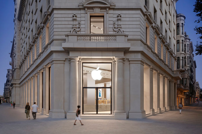在西班牙巴塞罗那,苹果商店庄严而美丽。这座美丽的西班牙建筑曾是一家旅馆的所在地,然后是一家银行的总部,苹果后来然后将27,000平方英尺的空间变成了Apple Store。