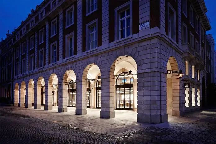 在伦敦考文特花园的商店建筑是一所19世纪酒店的所在地,需要数以千万计的砖瓦和石拱门才能得到修复和修复。