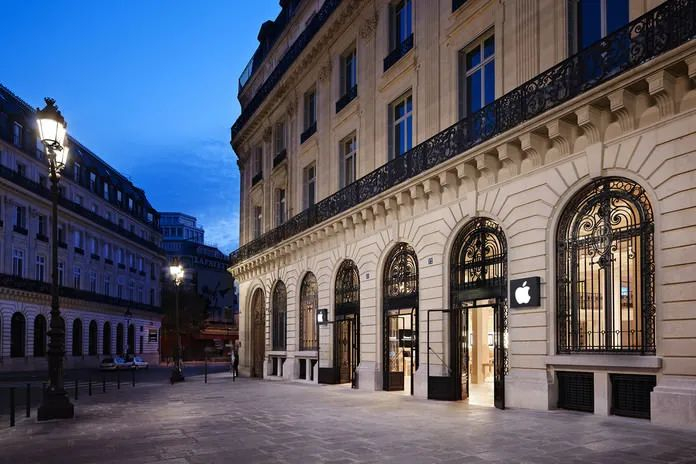 这里曾经是一家夜总会,苹果用玻璃面板重建了这座大楼,商店穹顶的圆形窗户能够采光,在白天反射阳光,看起来波光粼粼。而晚上,这个大球还会像灯笼一样发光。「该结构的形状提供了一个全新的商店布局。」苹果公司说,「这将为您提供一个探索,连接和创建新事物的空间。」