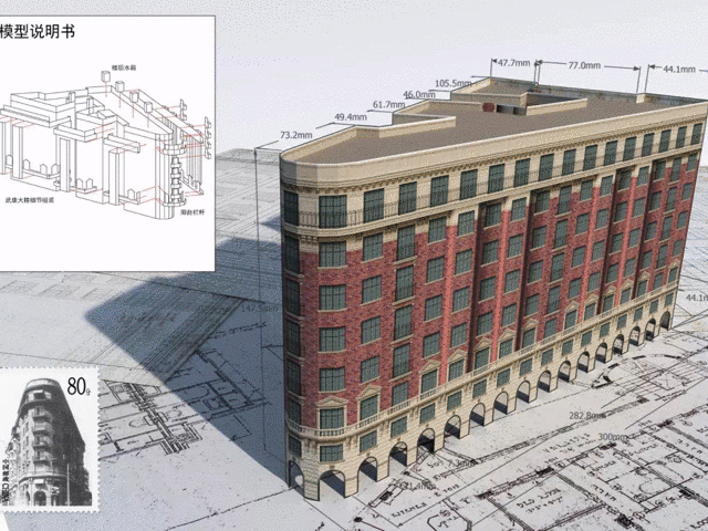 作者依据武康大楼实体和图纸,设计出纸质模型,进行了像素级别的还原。