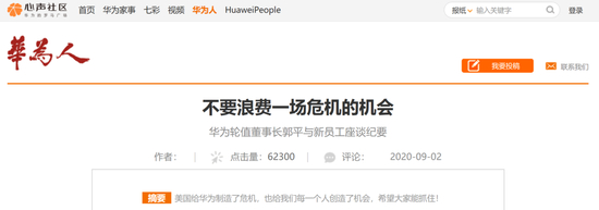 日前,华为轮值董事长郭平与新员工进行座谈,于9月2日对外公开了署名为《不要浪费一场危机的机会》的这次座谈会纪要。