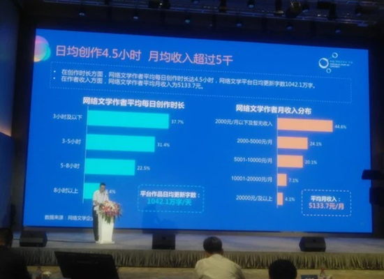 现场还公布了《2019中国网络文学发展报告》,报告显示,2019年,网络文学行业市场规模达到201.7亿元,中国网络文学作者1936万人,其中签约作家400万人,平均收入5133元。