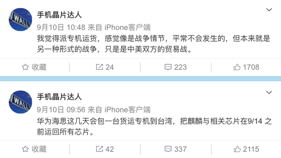 据业内人士“手机晶片达人”在其微博透露,华为海思近期在包机运回所有芯片。