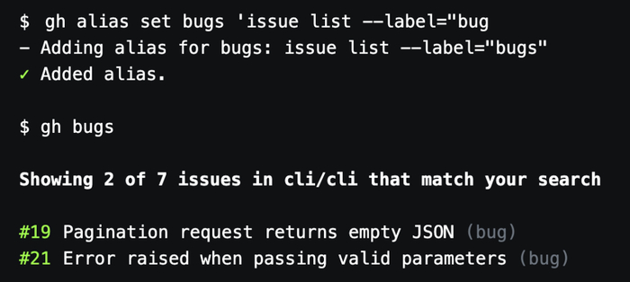 GitHub CLI还有一项重要功能是支持自定义命令缩写,操作方法和Linux中的alias命令类似。